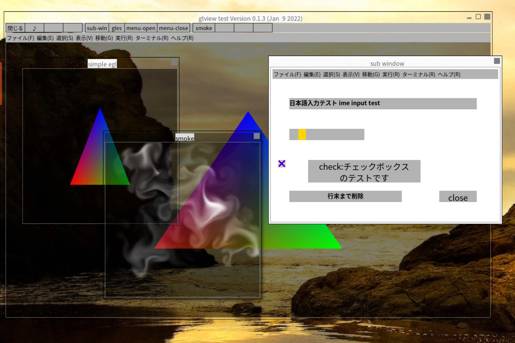 wayland を使用するGUIアプリの開発では、ウインドウズやX11ベースのウインドウシステムが行っている処理をほとんど自分で実装する必要があります。