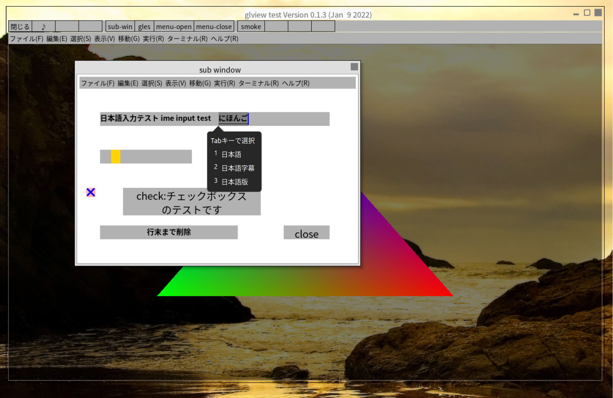 (3)文字描画は、freetype2、日本語入力はibus-1.0を使用
